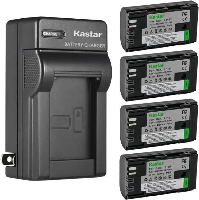 Kastar 4-Pack Battery and AC Wall Charger Replacement for Canon LP-EL Lithium-Ion Battery Pack, Canon 4307C002 Battery, Canon Speedlite EL-1 EL1, E-TTL, E-TTL II Flash Light