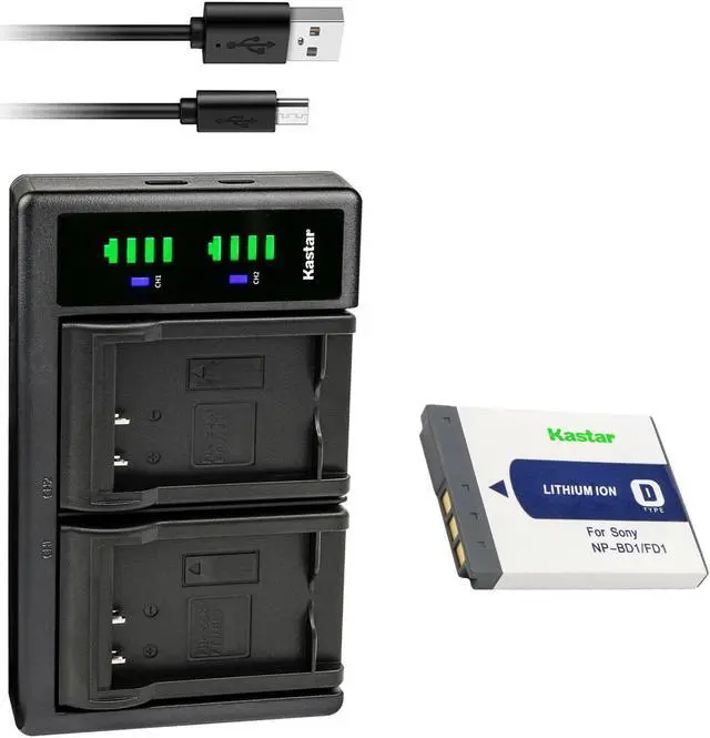 Kastar 1-Pack Battery and LTD2 USB Charger Compatible with Sony NP-BD1 Battery, BC-CSD BC-CS3 Charger, Sony Cyber-shot DSC-T77, Cyber-shot DSC-T90, Cyber-shot DSC-T200, Cyber-shot DSC-T300 Cameras