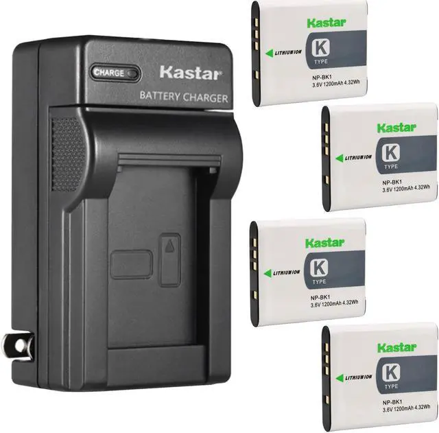 Kastar 4-Pack Battery and AC Wall Charger Replacement for Sony NP-BK1 NP-FK1 Battery, Sony BC-CSK Charger, Sony Cyber-shot DSC-W180, Cyber-shot DSC-W190, Cyber-shot DSC-W370 Cameras