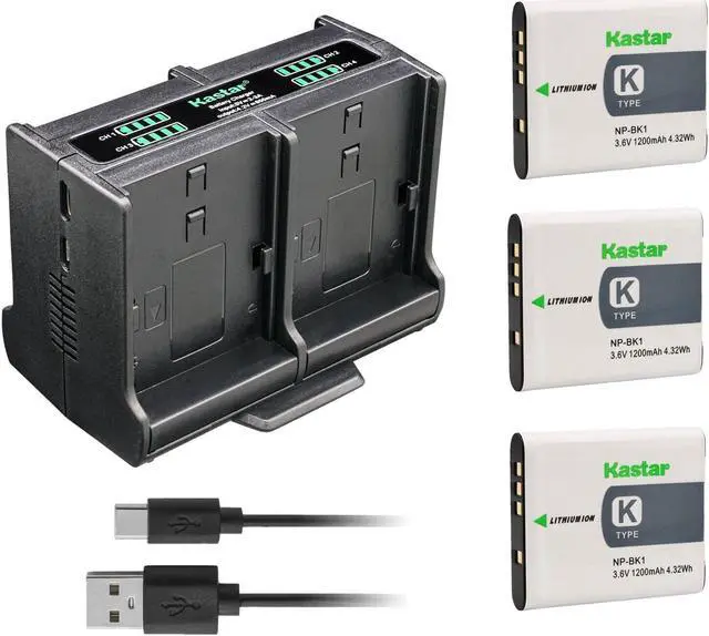 Kastar 3-Pack Battery and Quadruple Charger Compatible with Sony NP-BK1 NP-FK1 Battery, Sony K Type Battery, Sony BC-CSK Charger