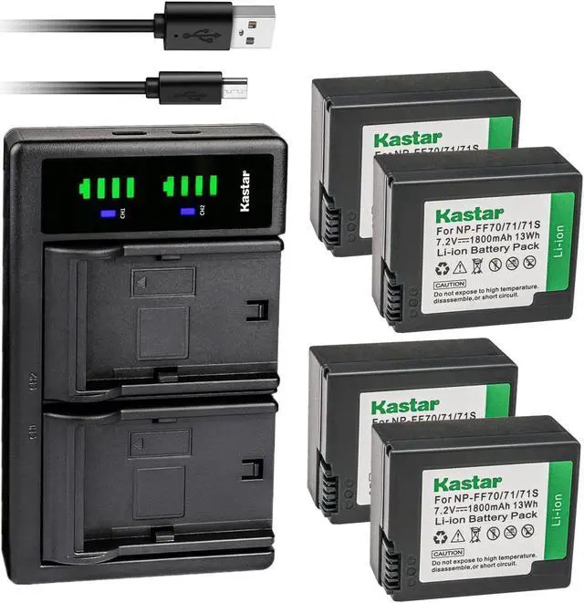 Kastar 4-Pack NP-FF70 Battery and LTD2 USB Charger Compatible with Sony DCR-IP5E DCR-IP7 DCR-IP7BT DCR-IP7E DCR-PC106 DCR-PC106E DCR-PC107 DCR-PC107E DCR-PC108 DCR-PC108E DCR-PC109 DCR-PC109E Camera