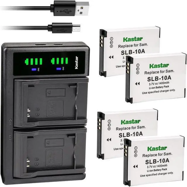 Kastar 4-Pack SLB-10A Battery and LTD2 USB Charger Replacement for Samsung P800, P1000, PL50, PL51, PL55, PL60, PL65, PL70, SL102, SL202, SL310, SL420, SL502, SL620, SL720, SL820, ST1000, TL9, WB150F