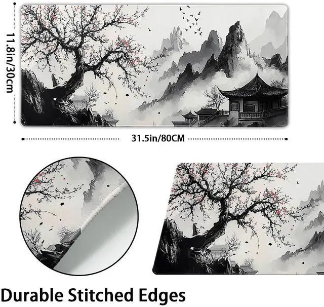 Japanese Anime Art Landscape Large Mouse Pad Large Extended Mouse Pad 31.5 x 11.8 Non-Slip Rubber Base Full Desk Pad Japanese Sakura Gaming Keyboard Mat with Stitched Edges for Home Office Gaming Work