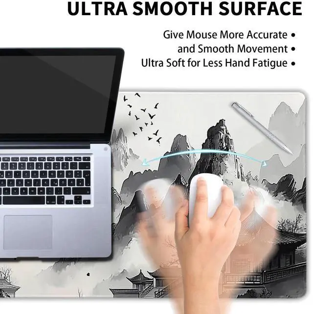 Smooth and Soft MaterialsThis japanese mouse pad is made with tech microfiber fabric, mouse can be quickly moved and accurately positioned on the slick surface, helps you access optimum speed and accurate control during your work or game. This mouse & keyboard mat will provide you with the maximum comfort using experience.