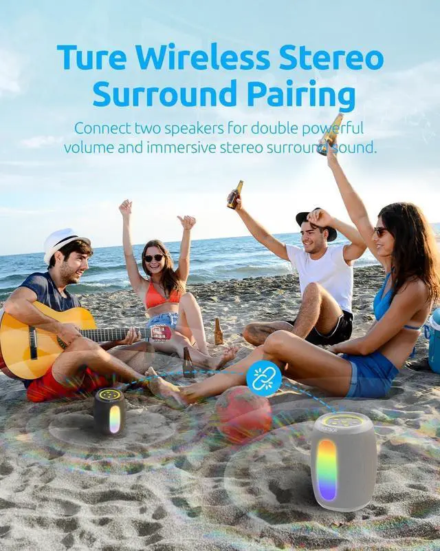 IPX5 waterproof, sandproof, dustproof,great speaker for beach,poolside or bathroom.