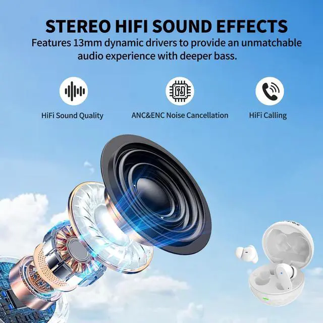 13mm drivers deliver deep bass, while dual ENC/ANC mics block noise for crystal-clear calls.