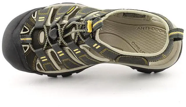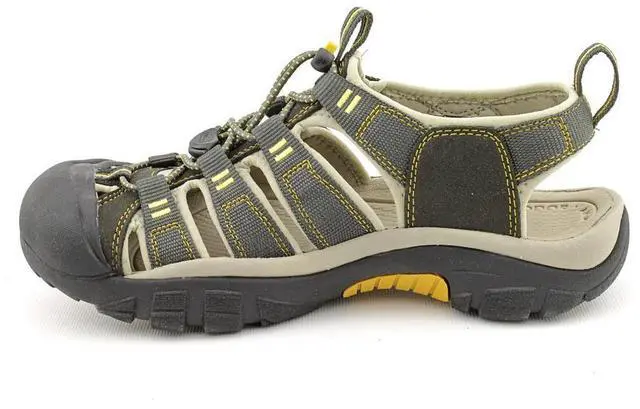Fuse your multi-sport endeavors with the versatility of the Keen Newport sandal. Features a waterproof nubuck leather upper with elastic cord lacing and reflective pull loops for easy on-off access. Patented rubber Toe Guard protects against bumps and abrasions. Hydrophobic foam lining offers dry comfort while the Metatomical footbed with offers great comfort while fighting odors. The non-marking rubber outsole with knife-cut siping ensures excellent traction on both wet and dry surfaces as well.