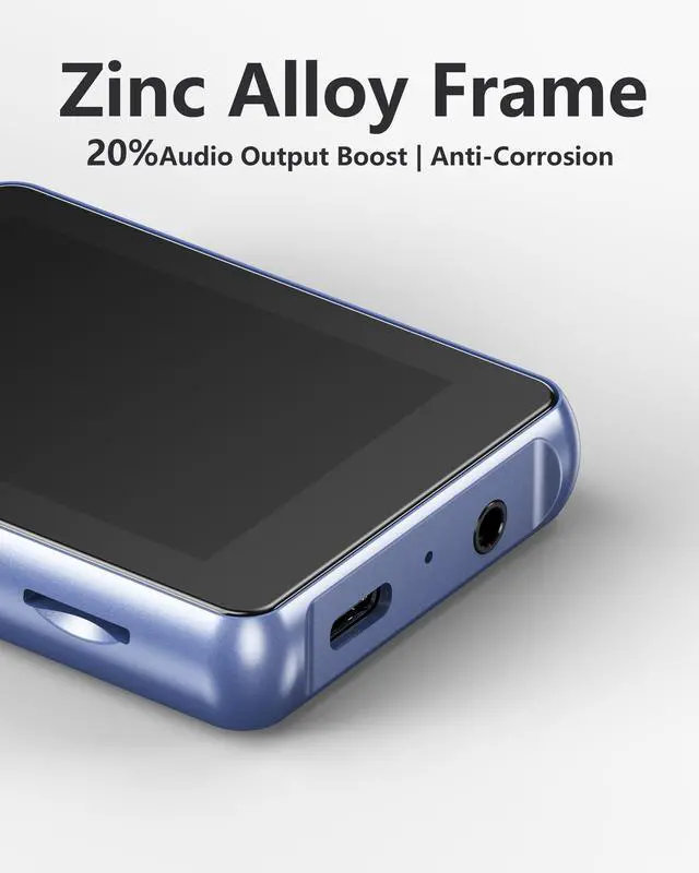• Premium Zinc Alloy & Pocket-Friendly Build Crafted from high-grade Zinc Alloy,this Metal Music Player features an ergonomic Rounded Corner design,creating a durable,Slim MP3 Player that feels premium and wont scratch your belongings in your pocket.