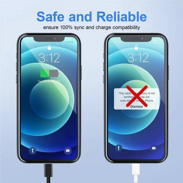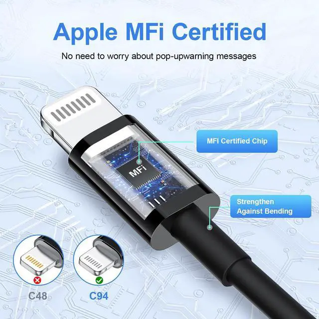 Each cable chip is officially authorized MFi certified while effectively preventing overheating, overcharging and overvoltage. After many upgrades of the c94 chip, charging is faster and safer. Ensures 100% compatible charging with your iPhone device.