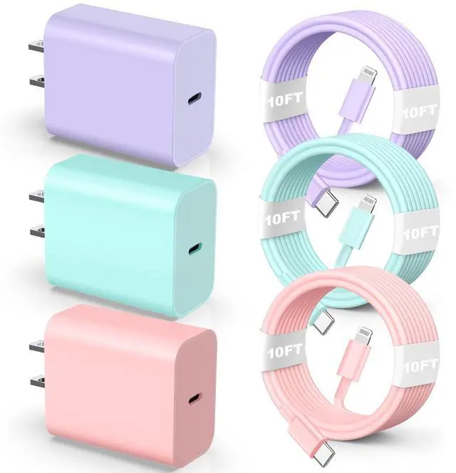 KEHIPI Compatible with iPhone 14 13 12 Charger, 20W Fast Charging Wall Charger, 10 FT USB ightning Cable,Phone Charger Cord for Phone 14/13/12/12 Pro Max/11/Xs Max/XR/X,AirPods Pro-Purple/Pink/Blue