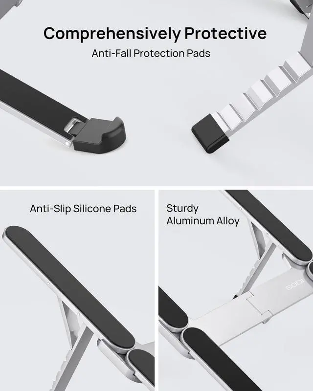 Adjust in seconds with the spring-loaded arm. Set your perfect height (6 options) to stop neck strain and work comfortably. The strong aluminum frame keeps your laptop steady and cool.