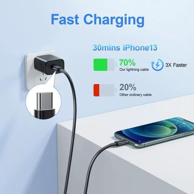 Each cable chip is officially authorized MFi certified while effectively preventing overheating, overcharging and overvoltage. After many upgrades of the c94 chip, charging is faster and safer. Ensures 100% compatible charging with your iPhone device.