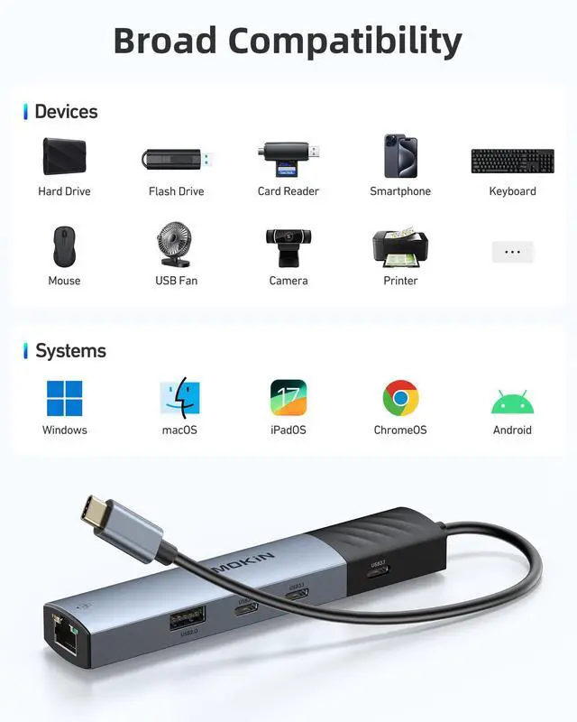 USB C Hub ethernet adapter delivers a stable and speedy internet connection. Whether you're working from home, gaming, streaming, or handling large data transfers, this gigabit ethernet port will prevent you from encountering network lags again.