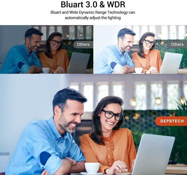 Built in stereo and dual Mic, this computer camera can enhance the sound absorption and noise reduction microphone. Clear call, easy chat video.