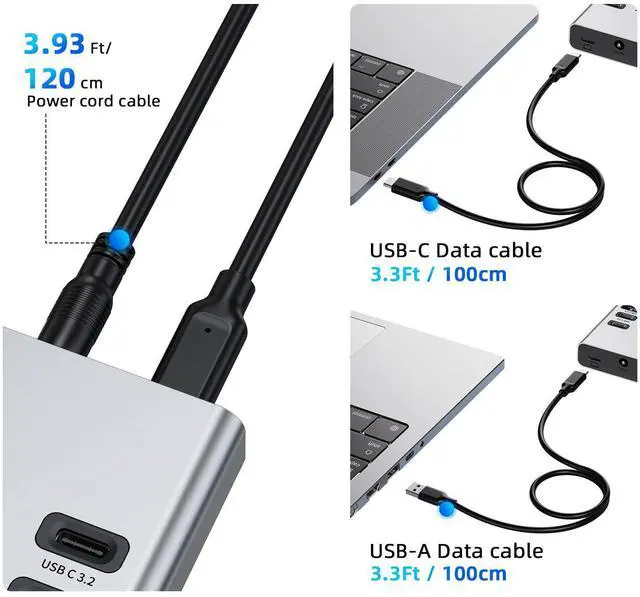 10Gbps High-speed Data Transfer: powered usb c hub come with 10 x USB 3.2 ports with speeds up to 10Gbps, up to 2 faster than USB 3.0 hubs and a maximum power output of 5V/1.5A. With the ultra-high transfer speed, HD photos, videos and any file transfer can be done in seconds. The 12V/7.5A Power adapter ensures that you receive stable and fast data transfer during heavy-duty use.