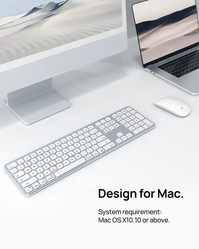 Upgrade your workspace with the Premium Wireless Keyboard for Mac, a blend of style and functionality tailored for Apple enthusiasts. Crafted with a sleek aluminum body and featuring a full-sized layout complete with a numeric keypad, this keyboard is designed to enhance productivity and streamline tasks.