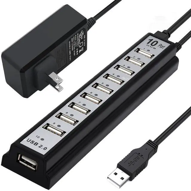 Powered USB Hub 2.0, VIENON 10-Port USB Hub USB Extender Splitterwith Individual LED Indicator Light for MacBook, PC, Laptop, Desktop Xbox, Flash Drive, HDD, Console, Printer, Camera,Keyborad, Mouse