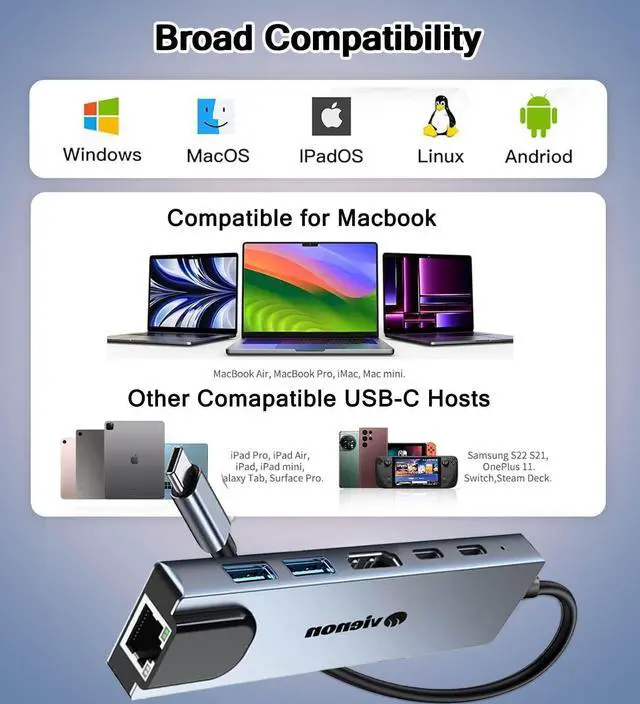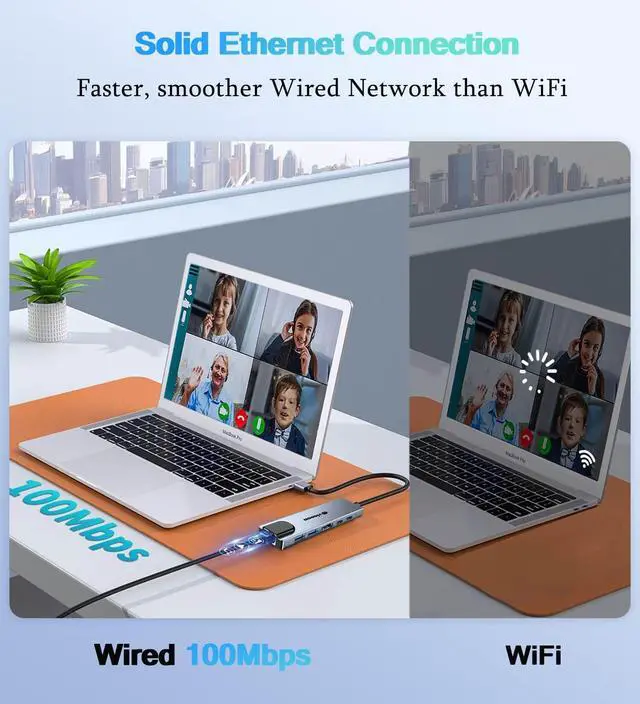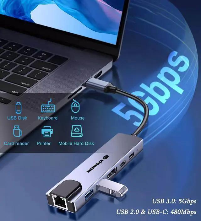 6 in 1 USB C Hub Multiport Adapter, USB C Thunderlt to HDMI Adapter, USB C to Ethernet Adapter, with USB 3.0/2.0, PD 100W Fast Charging Port, LAN USB C Docking Station for Laptop, Macbook Air/Pro, Chromebook, Dell XPS, HP and More Thunderlt 3/4 Devices