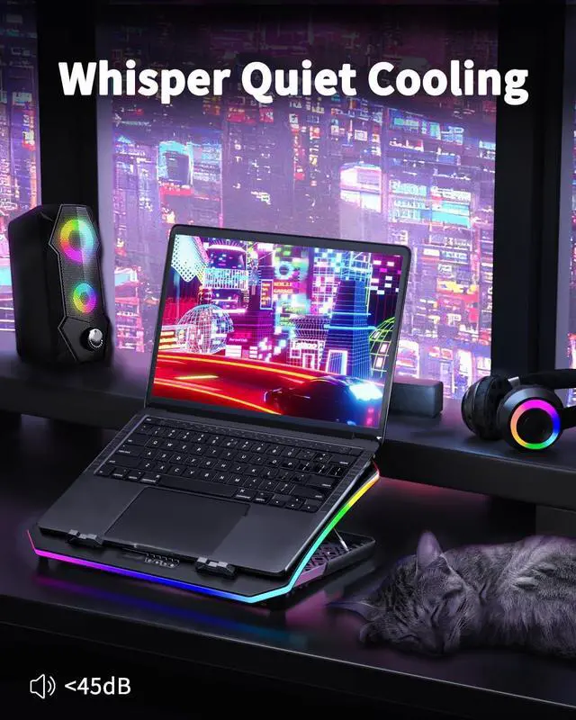 9 turbo fans,10 RGB lights,whisper quiet, LCD display, perfect for gaming & working, phone stand