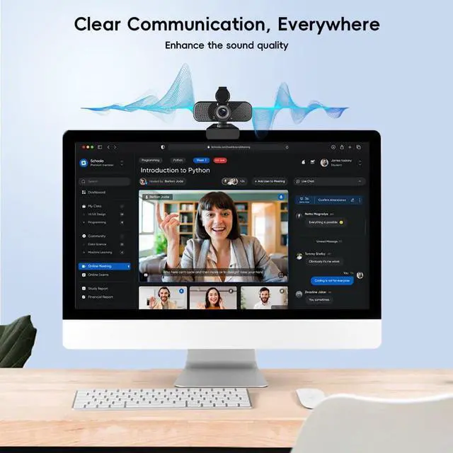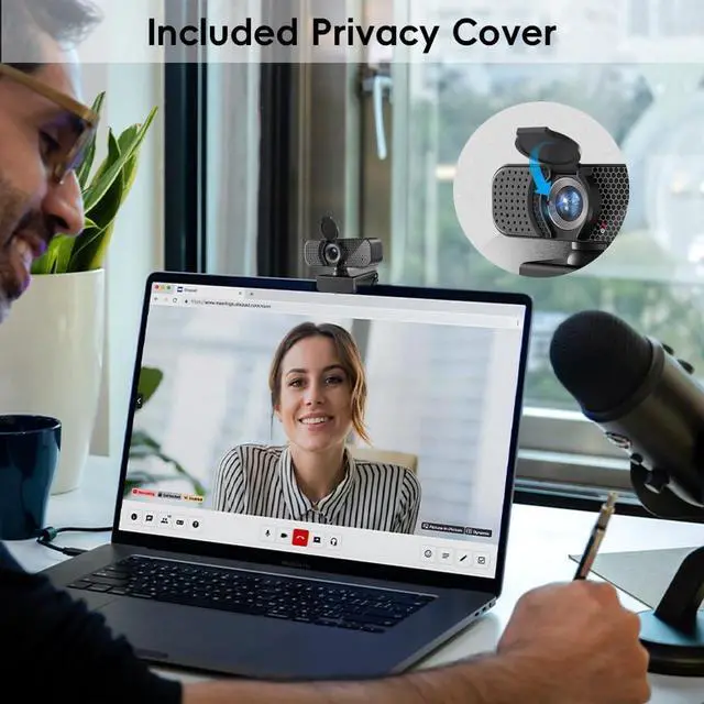 Webcam with Built-in Microphone for Clear Audio This webcam with microphone provides clear voice pickup for Zoom, Microsoft Teams, Skype, and Google Meet, supporting smooth audio performance for video meetings, online interviews, and video chats.