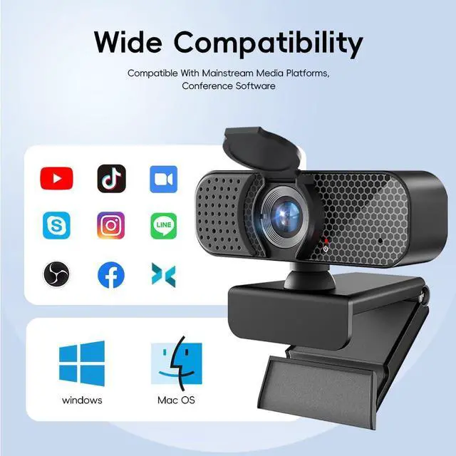 Plug and Play USB Webcam for Computer Designed as a USB plug and play webcam, no driver or software installation is required. Simply connect it to your laptop or desktop PC and start using it instantly. Compatible with Windows, macOS, Linux, and Android systems.