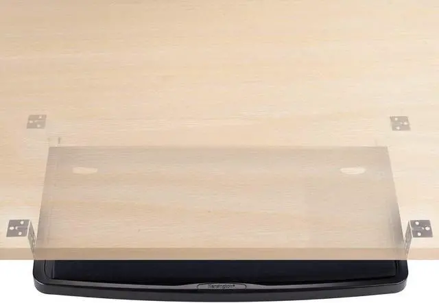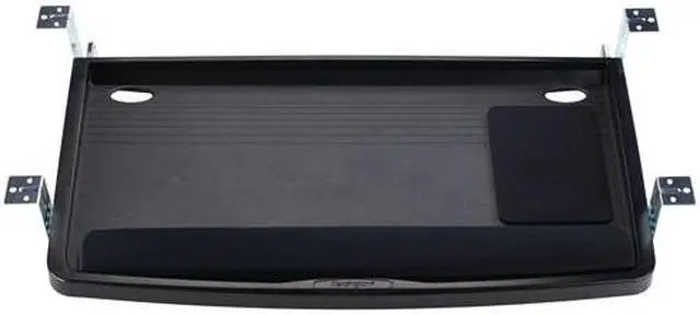 . . Underdesk keyboard drawer features an extra wide 26" tray with integrated mousing area and is designed for use with standard workstations. SmartFit System lets you quickly and easily mount at one of three heights for customized comfort. Drawer includes wrist rest and mouse pad. Underdesk drawer offers easy installation and cable management. Mousing surface can be used to the left or right of the keyboard. Track length is 17". .