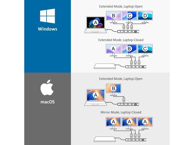 - Triple Video for Windows: support for up to Triple 1080p @ 60Hz, Dual 4K @ 60Hz for Windows devices, and Single 4K @ 60Hz for both Windows and MacBook devices