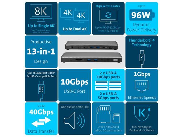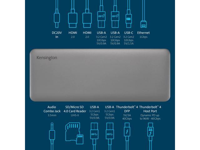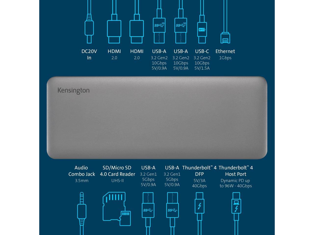 Kensington SD5760T Thunderbolt 4 Dual 4K Docking Station, 100W PD, 2 x HDMI, SD/Micro SD 4.0 Card Slots, 60Hz, for Windows Laptops and MacBook Pro (K34110NA) - Black
