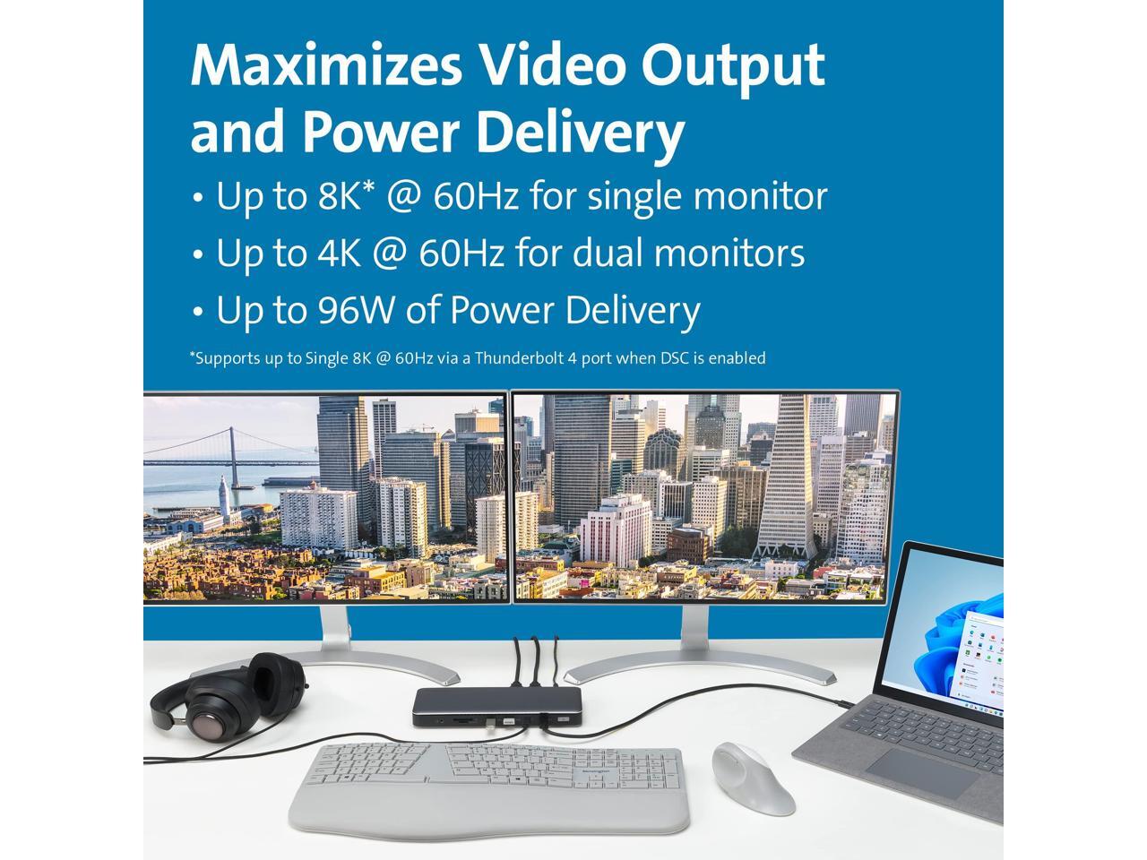 - Extend visual productivity with the resolution, contrast, and color depth of Ultra HD. Supports up to Single8K @ 60Hz via a Thunderbolt 4 port or Dual 4K @ 60Hz via two HDMI ports. M1/M2 or M3 Base Chipset MacBook or USB-C Alt Mode laptop supports only a single external display