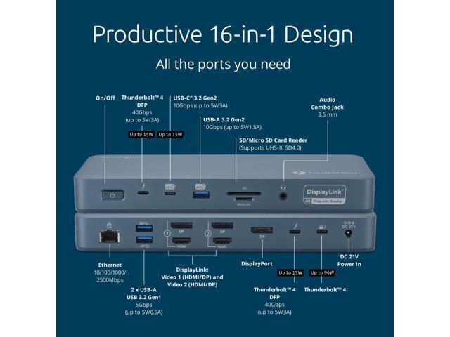 - for Notebook/Smartphone/Monitor/AirPod/Smartwatch/Solid State Up to Quad 4K Video via HDMI®, DP, and Thunderbolt™