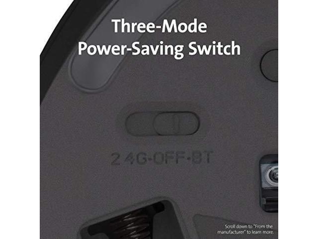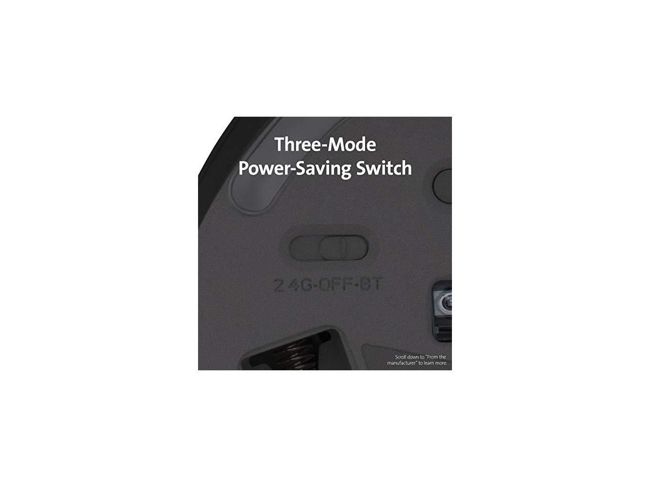 - Three-mode power-saving switch allows you to toggle between 2. 4GHz, Bluetooth, and off for best battery life.