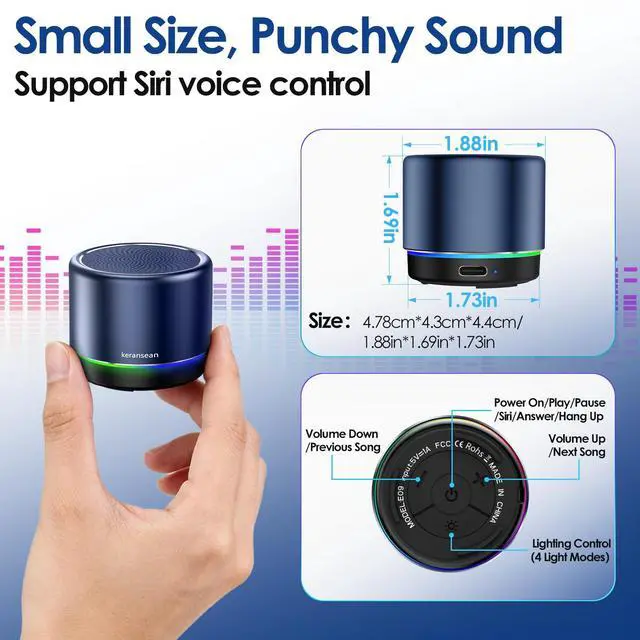 Small Bluetooth Speaker with Lights, Mini Speakers with BT5.4 and Loud Stereo Sound, Blue Portable Bluetooth Speakers for Room, Car, Bike, Camping, Built in Mic, Pocket Size, Ideal Gift for Men, Women