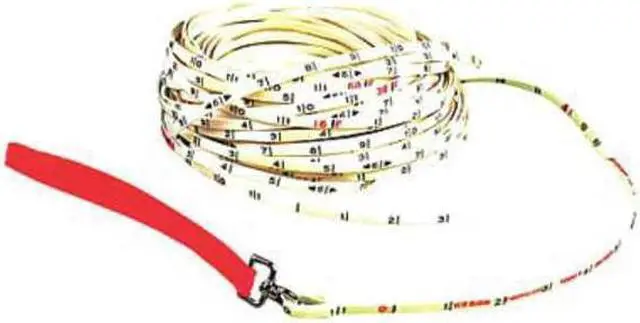 Surveyors' Rope Makes an ideal drag chain for rough surveying measurements. Numbers are graduated from the strap handle upward to the end of the rope.Tensile Strength:100 kg/200lbs.No hook on the tape end. Available in Following Models: Model Length Units. SR18200 200 ft. ft. & in. SR10200 200 ft. ft. & 10ths