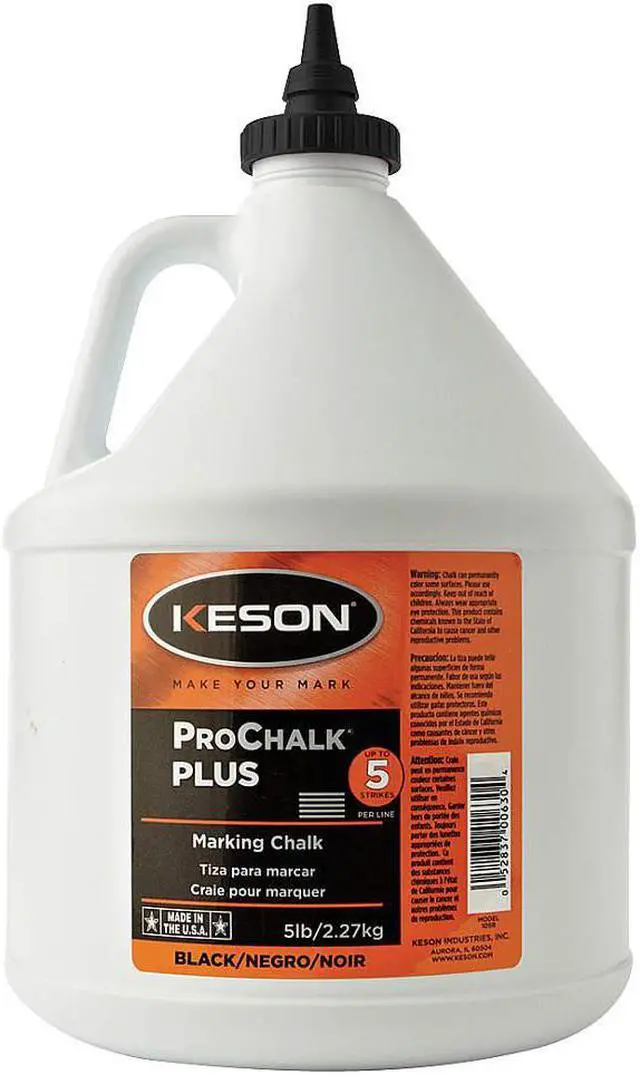 California Proposition 65: This product contains a chemical known to the State of California to cause birth defects or other reproductive harm. Marking Chalk, Chalk Color Black, Chalk Features Waterproof, Chalk Permanence Permanent, Container Features Tapered Refill Tip with Cap, With Handle, For Use With Chalk Line Reels, Product Type Marking Chalk, Size 5 lb. This item has been restricted from sale in the following state (s): []