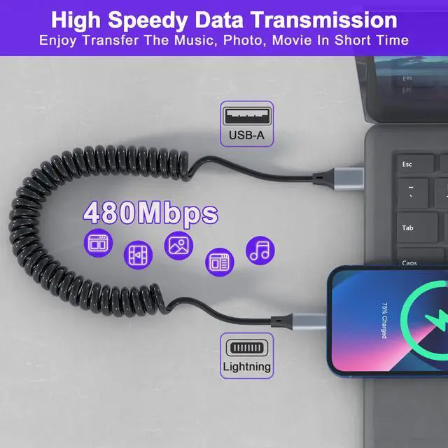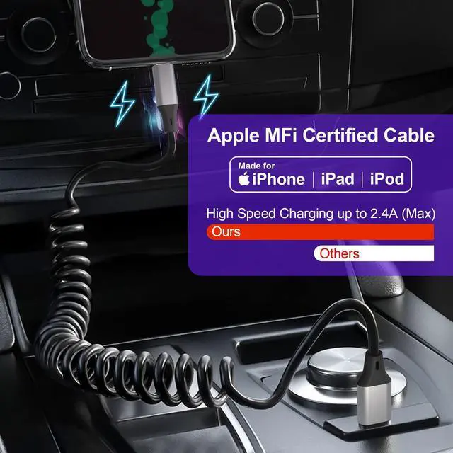 ![Alt view image 6 of 7 - Coiled Lightning Cable Apple Carplay Compatible [Apple MFi Certified] Retractable iPhone Charger with Data Sync, Short iPhone Charger Cord for iPhone/Pad/Pod](https://c1.neweggimages.com/productimage/nb640/C5MSD2603160AY7T4AC.jpg)