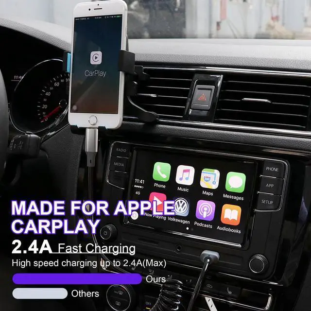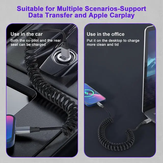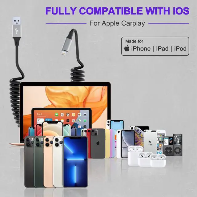 - Retractable iPhone car charger with spring shape design, portable and not tangled. Besides, Apple carplay cable can save your space in the car and say goodbye to the hassle of charge cable clutter and tangles.