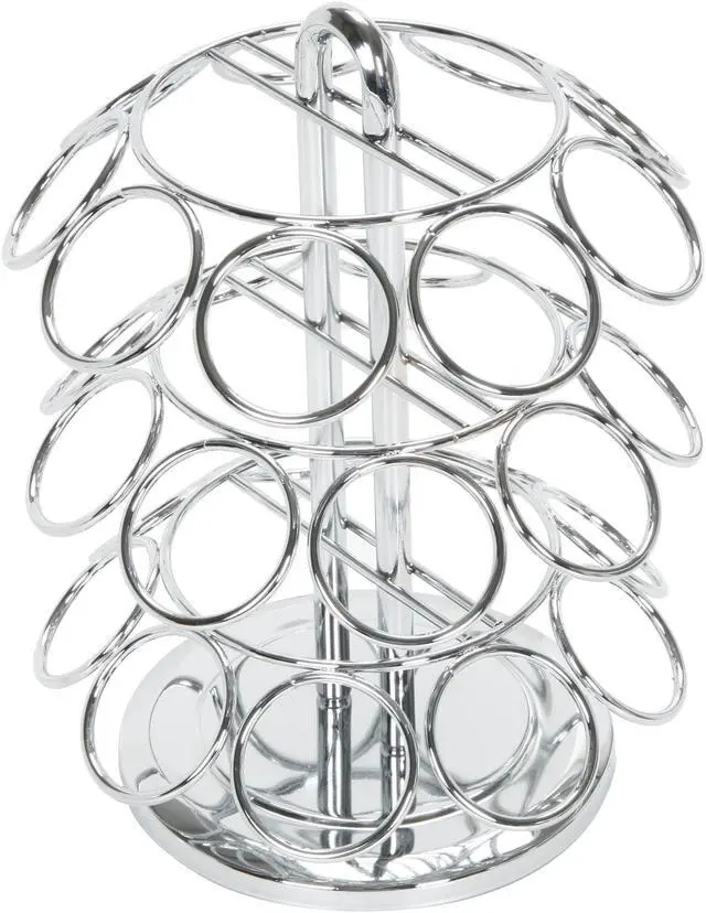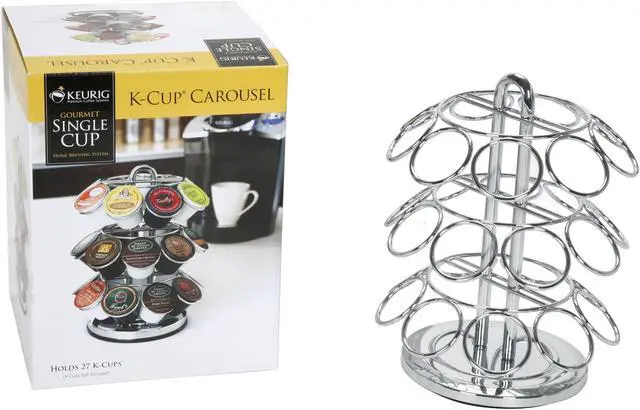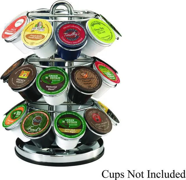 You can slide up to 27 K-cups into this spinning carousel and not worry about them rolling off the counter or falling out of a cabinet. And when the attractive chrome carousel isn't in use, it stores easily in a cabinet or pantry closet. Measures 10 in. H x 8 in. D. K-cups sold separately.