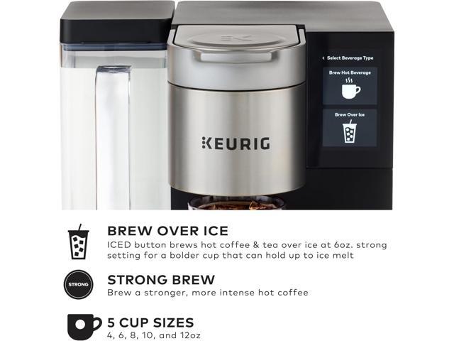 - Brew Over Ice - Brew any K-Cup® pod over ice, brews hot coffee 6oz, strong