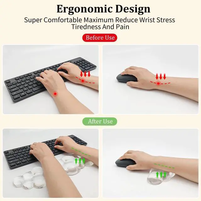 Silicone Gel Wrist Rest:Silicone gel wrist rest is made of High quality silicone,soft and cool,ergonomic structure conform to your wrist,effectively reduce wrist fatigue pain,it's cute,sometimes people wants to squish and pinch it,very Decompressed
