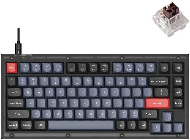 V1 Wired Custom Mechanical Keyboard, 75% Layout QMK/VIA Programmable Macro with Hot-swappable K Pro Brown Switch Compatible with Mac Windows Linux (Frosted Black - Translucent)