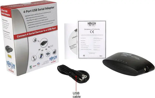 Keyspan by Tripplite. It's easy to connect four RS-232 serial devices to a USB port. Designed for enterprise and industrial applications including point of sale, data acquisition, and process control system. For use with a Mac, or Windows PC or woth 2002 Pocket PC's with USB host capability. RoHS compliant replacement for USA49WLC"