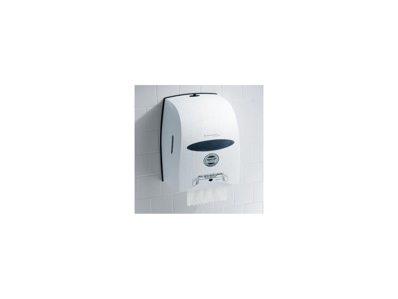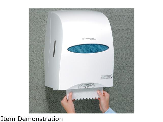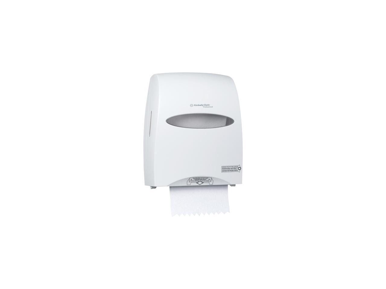 The Sanitouch Hard Roll Paper Towel Dispenser (in White), by Kimberly-Clark Professional, is a high-capacity wall mount system for less maintenance time, run-outs and complaints