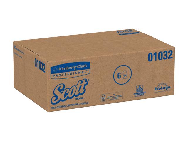 Scott Essential Roll Control Center Pull Paper Towels (01032) with Fast-Drying Absorbency Pockets, Perforated Full-Sized Hand Paper Towels, White (6 Rolls per Case, 4,200 Sheets Total)