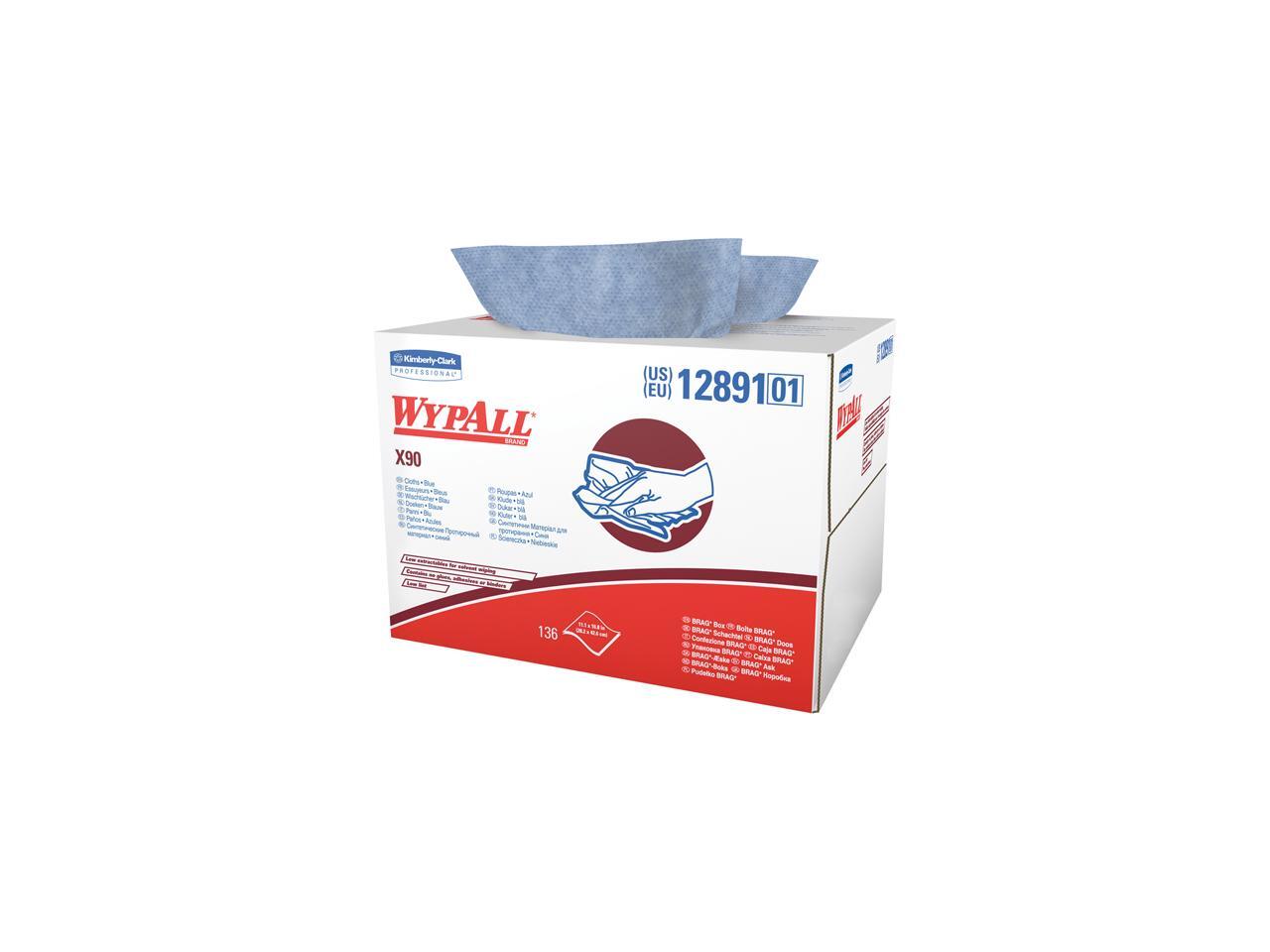 WypAll X90 Extended Use Cloths (12891), Reusable Wipes BRAG BOX, Blue Denim, 1 Box / Case, 136 Sheets / Box