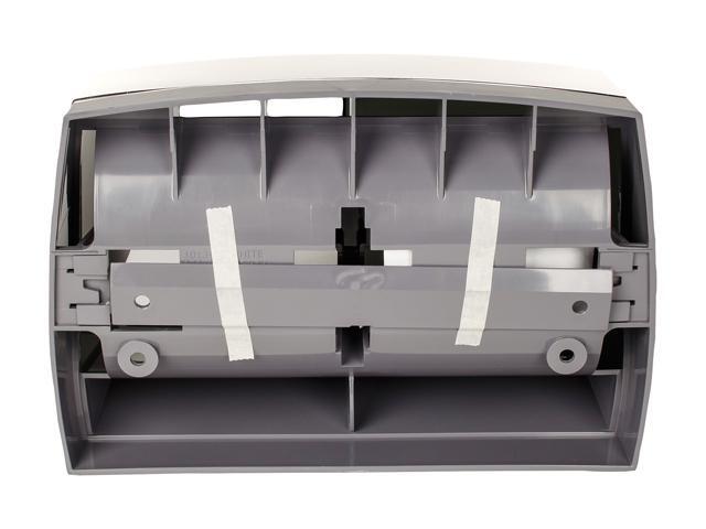 White, manual dispenser offers easy refills and maintenance with no lock