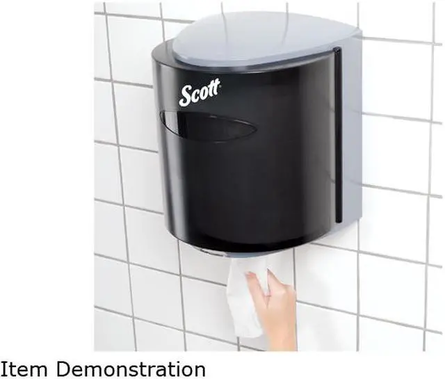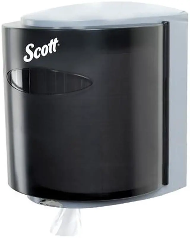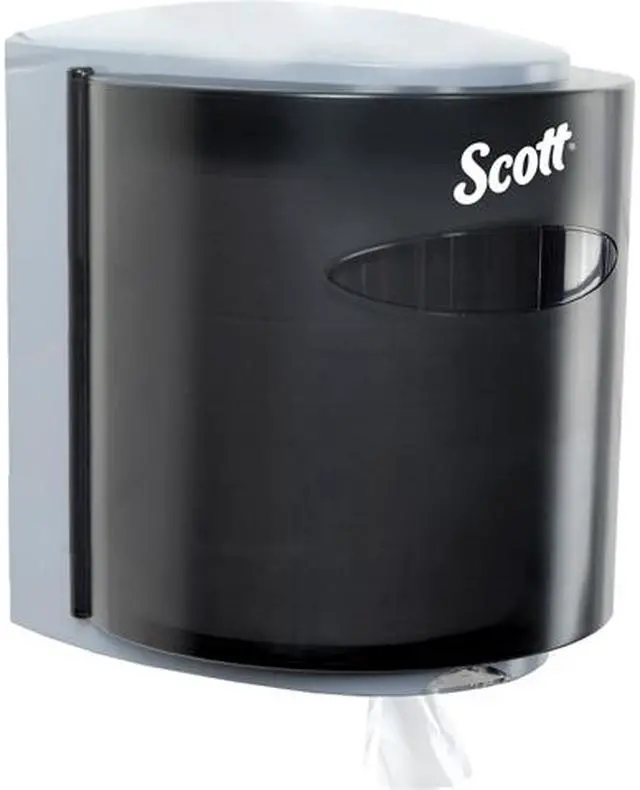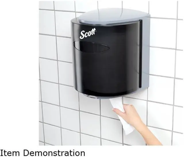 Scott Roll Control Center-Pull Paper Towel Dispenser - Center Pull Dispenser - 1 x Roll - 11.9" Height x 10.4" Width x 9.4" Depth - Smoke Gray - Lockable Center-Pull Towel Dispenser offers roll control so you pull off a towel from any angle with minimized roping and streaming. Hands touch only the towel used. Design allows easy, one-handed loading. Patent-pending, "dynamic throat" technology reduces dispensing problems. Towels are used with Kimberly-Clark center-pull systems that reduce dispensing problems and provide more hand dries per case. Towel dispenser holds Kimberly-Clark Scott Roll Control Center-pull Towels with patented absorbency pockets.