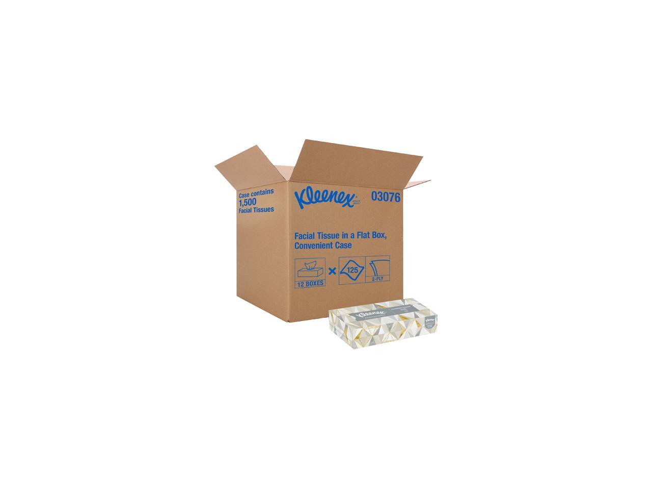 Kleenex Professional Facial Tissue for Business (03076), Flat Tissue Boxes, 12 Boxes / Convenience Case, 125 Tissues / Box
