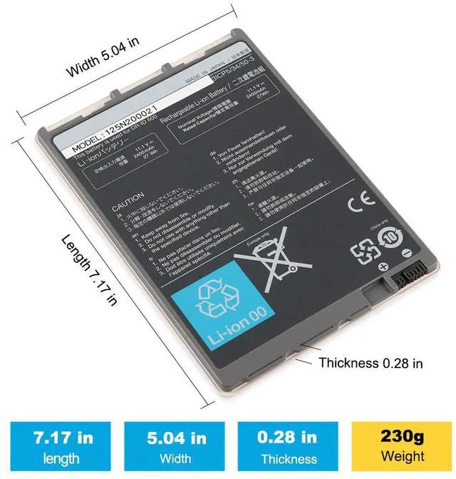 • Capacity:2400mAh/27Wh
