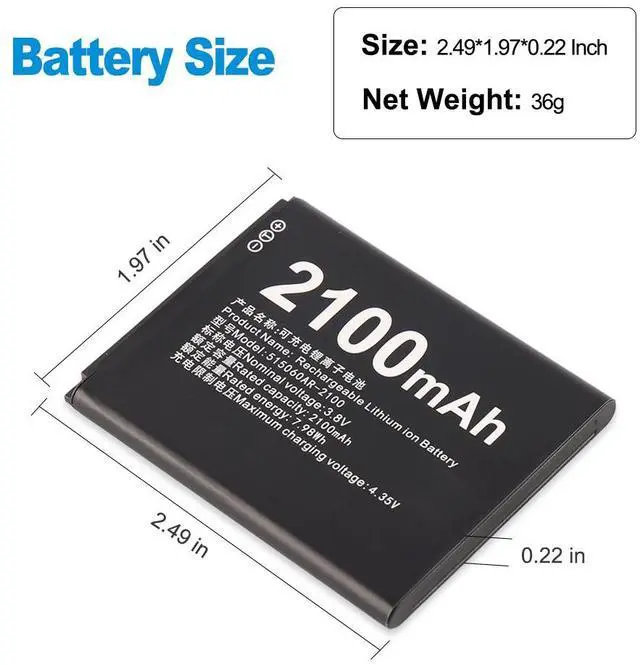 • Capacity: 2100mAh/7.98WH