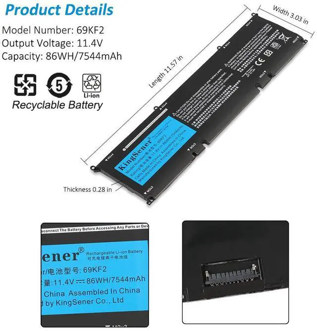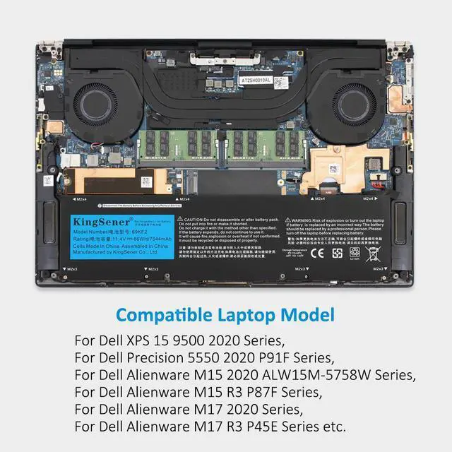 Kingsener 69KF2 Laptop Battery For XPS 15 9500 P91F P91F001 M15 R3 R4 P87F P87F002 P87F003 M17 R3 R4 P45E P45E001 P45E002 G7 15 7500 Precision 5550 Series 8FCTC 08FCTC 70N2F 070N2F
